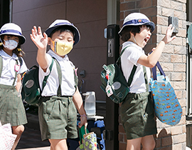 徒歩通園の子とバス通園の子がいます。「おはようございます!」と気持ちのいい元気な挨拶から一日が始まります。
